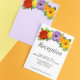 Wedding collection featuring vibrant red, golden yellow and light purple floral design accented with orange and lemon citrus fruit and botanical greenery