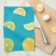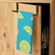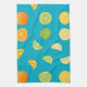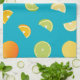 This kitchen towel features limes, lemons, and oranges on a teal blue background. Perfect for adding a pop to any kitchen.