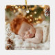 This is a lovely ornament, and great that you personalise the back with details of birthday, weight, etc.. My only tiny disappointment is the "My First" doesn't stand out very well on the background. More than happy with the printing of the photo and the writing on the back.