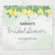 Citrus lemon bottle labels with fresh lemons, botanical greenery and a soft mint green watercolor wash. "Bridal Shower" is lettered in casual handwritten script typography but all of the wording is editable to suit any occasion.