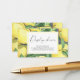 Watercolor lemon citrus theme bridal shower card featuring watercolor illustration of lemons pattern and greenery branch. Elegant calligraphic handwriting, which is perfect for spring, summer or autumn weddings. Matching items available.