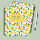 Colourful citrus lemon pattern notebook, just add your own name and choice of text. Matching items available. Original art from artists own illustrations. Please use the message me button below for help with further customisation and special requests. © Zoe Chapman Design