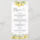 Lemon Green Citrus Wedding Ceremony Menu. This stylish & elegant Wedding Shower Invitation features gorgeous hand-painted Lemon Green Citrus. Find matching items in the Lemon and Greenery Citrus Floral Collection.