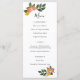 A menu card perfect for a luncheon wedding or baby shower. Featuring lemons, oranges and greenery. Customise with your menu text for a brunch, luncheon or dinner.