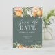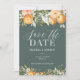Citrus, orange + blossom wedding save the date invitation. Beautiful watercolor foliage, fruit and floral illustrations. Party of a collection.