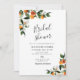 A beautiful design with lovely hand painted citrus oranges and green foliage with black text in the middle. The text and green back colour can be edited along with other features of this template.