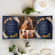 Citrus Orange Gold Navy Blue Photo Collage Wedding Tri-Fold Invitation