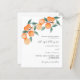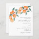 A white background. Decorated with watercolored oranges. Personalise and add a name and party details.
