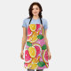 This apron features a vibrant citrus design with glossy slices of grapefruit, lemon, and orange arranged against a playful pink background with white polka dots. Fresh green leaves add a lively contrast, creating a cheerful, sunny look that instantly brightens any cooking or baking moment. Designed for comfort and everyday practicality, this apron protects clothing while adding a bold, uplifting aesthetic to the kitchen. Whether preparing meals, hosting guests, or crafting creative projects, it brings a refreshing burst of color and personality to your routine.