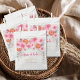 Enhance your baby shower with our exquisite personalised in Spanish party favour bags, designed to perfectly match your celebration's theme. These delightful bags feature a stunning arrangement of pink roses, peonies, and dahlias, intertwined with soft green eucalyptus foliage and delicate pink buds. Adding a unique flair, vibrant slices of blood orange with pink and orange centres are thoughtfully integrated into the floral design.