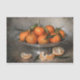 The piece's sophisticated palette weaves together brilliant tangerine, polished silver, and deep forest green against moody atmospheric shadows, creating a sense of classical refinement that will transform any furniture piece into an homage to traditional still life mastery.