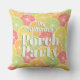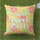 Stylish outdoor fabric pillows feature your family name and the words "Porch Party" on a background of orange, lemon, lime and grapefruit slices. Fun for summer decor accents. MATCHING items in our store.