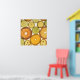 A fun design featuring various slices of citrus fruit in shades of orange, yellow and green.