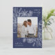 A modern and elegant holiday card that frames your square photo in a beautifully detailed frame with citrus fruit slices, star anise, and pine boughs on a rich blue background. "Always Merry" appears at the top right, with your family name along the bottom. The year is tucked elegantly at the lower left of the finely detailed white botanical frame. A delicate and refined nature inspired choice for your Christmas 2021 cards.
