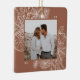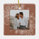 A modern and elegant holiday ornament that frames your favourite square photo in a beautifully detailed frame with pine boughs, winter leaves, star anise, and citrus slices on a rich earth toned background. Personalise the back of this unique Christmas photo ornament with your family name.