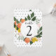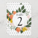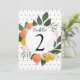 Citrus-themed Table number card featuring watercolor wreath with greenery, oranges and lemons. Table number card prints on front and back (double-sided). Items are printed exactly as they appear on your screen when you add to cart, so personalise and add each table number that you need to your cart individually.