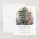 This festive Christmas holiday moving announcement features the saying "Happy Holidays from Our New Place" with a beautiful watercolor city apartment with a big Christmas tree. The announcement is perfect for sending to friends and family during the holiday season to let them know about your new address. The front of the announcement features the saying and the watercolor snowy city street scene, and includes your new address and contact information. The overall design is festive and charming, and the announcement is sure to put a smile on the faces of your loved ones.