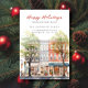 This festive Christmas holiday moving announcement features the saying "Happy Holidays from Our New Place" with a beautiful watercolor city street with a big Christmas tree. The announcement is perfect for sending to friends and family during the holiday season to let them know about your new address. The front of the announcement features the saying and the watercolor snowy city street scene, and includes your new address and contact information. The overall design is festive and charming, and the announcement is sure to put a smile on the faces of your loved ones.