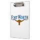 This design features the flag of Fort Worth, which is one of the largest cities in the U.S. state of Texas. It is the county seat of Tarrant County. The city of Fort Worth was established in 1849 as an army outpost on a bank of the Trinity River. Fort Worth has historically been a centre of the Texas Longhorn cattle trade. Although considered by some to be a satellite city due to its proximity to Dallas, which has held a population majority since the 1950s, Fort Worth has become one of the fastest-growing cities in the United States in recent years, particularly in the 21st century.