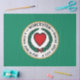 This design features the flag of Worcester, which is is a city in Massachusetts, United States. Worcester is the county seat of Worcester County, and it is named after Worcester, Worcestershire, England. Worcester is the second most populous city in New England after Boston. Because of its location in Central Massachusetts, Worcester is known as the "Heart of the Commonwealth"; for that reason, a heart is the official symbol of the city. However, the heart symbol may also have its origin in the fact that the Valentine's Day card, although not invented in the city, was first mass-produced and popularised by Worcester resident Esther Howland.