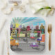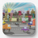 A cityscape with traffic on a highway in the foreground. This design looks really effective on these Paper Plates