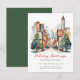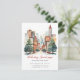 This festive Christmas holiday moving announcement features the saying "Holiday Greetings from Our New Home" with a beautiful watercolor city scene with scattered Christmas trees. The announcement is perfect for sending to friends and family during the holiday season to let them know about your new address. The front of the announcement features the saying and the watercolor snowy city street scene, and includes your new address and contact information. The overall design is festive and charming, and the announcement is sure to put a smile on the faces of your loved ones.