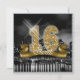 This classy invitation features a giant, gold faux-glitter '16' and ribbon over a black and white photograph of a bright city skyline reflected on water. Specify your event details on the back using the custom template. Search ID243 to see other products with this design.