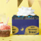 The searchlight beams over the city looking for help to save the people from injustice. Maybe the little Birthday Boy will be the super hero to save the day! Fun urban city skyline at night scene in blue with yellow moon, makes a great Birthday party theme for kids especially boys who love superhero themes.