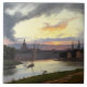 This design features a painting by the Norwegian artist Knud Baade (1808–1879). It shows a historical view of the German city of Dresden. The River Elbe can be seen flowing through the city, and there are some sailboats on the water. Elegant architecture can be seen in the city, with some towers rising above the other houses and buildings. There is a bright sunset that can be seen through the cloudy sky. The original art was painted in 1838.