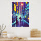 Two person walk down the street in a city at night, with a lot of light coming from the building around the street the person walking down. This is a AI generated art.