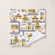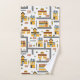 This custom city map themed bathroom bath towel set makes a perfect gift for young boys and girls who love roads, towns, buildings, and vehicles. There is a pattern of a cafe restaurant, pizza parlour, and school in shades of yellow, red, and grey. There are also trees and fences. Add the name of your little kid for a personal touch.