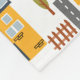 This custom city map themed bedroom or nursery fleece blanket makes a perfect gift for young boys and girls who love roads, towns, buildings, and vehicles. There is a pattern of a cafe restaurant, pizza parlour, and school in shades of yellow, red, and grey. There are also trees and fences. Add the name of your little kid for a personal touch.