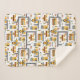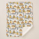 This custom city map themed bedroom or nursery sherpa throw blanket makes a perfect gift for young boys and girls who love roads, towns, buildings, and vehicles. There is a pattern of a cafe restaurant, pizza parlour, and school in shades of yellow, red, and grey. There are also trees and fences. Add the name of your little kid for a personal touch.