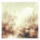 A serene cityscape blends with nature, featuring a leafless tree in the foreground with towering skyscrapers behind it. The scene is enveloped in a soft, misty glow, creating a dreamlike atmosphere.