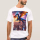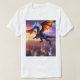 Unleash the mythic power with this bold t-shirt design featuring a majestic dragon soaring above a futuristic cityscape, breaking through the stars into deep space.