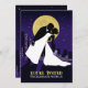 A unique graphic invitation featuring the silhouette of a bride and groom with the city skyline and stars in the background. Stand out with this poster-like illustrative wedding invitation! Wedding information appears on the back of the invitation, while the bride and groom's name and date are featured on the front.
