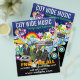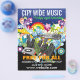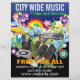 Create your own music event or band gig flyer by editing the text on both sides of this colourful music flyer full of bold stars, swirls, rainbows and city scene! Change the font style, font colours and sizes with the editor! Add or delete text, add directions or any information you want! Perfect for any band or musician to promote their gigs! Music promotion flyers!