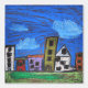 Cityscape "art by kids" crayon drawing painting house building street town