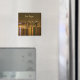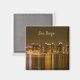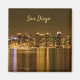 Cityscape Skyline Night California San Diego magnet: This is a photograph of the San Diego skyline taken at night in October 2020. The skyscrapers' lights reflect in the bay's water, and the light of the full moon that was rising at the time led to these dark and warm colours. This photo is available on products that make the perfect San Diego souvenir for yourself, or as a gift.