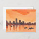 Cityscape Sunset | Orange City Skyline Watercolor Postcard