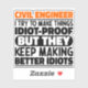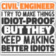 Funny Civil Engineer Sayings "Civil Engineer I Try To Make Things Idiot Proof But They Keep Making Better Idiots". Grab this Funny Civil Engineer design as a funny gifts for an awesome mum, dad or friend.