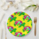 Lil Glass Turtle is a digital graphic art design. This design comes from a new collection of art work entitled: Crazy Kids Colours. Strong and bright crazy colours have created layer after layer of crazy fun perfect for children and adults alike. This design is the little glass turtle tiled into an allover pattern on a solid yellow background. The turtle is a green glass texture. His shell is multicolored gradients in the (ckc) collection made into digital glass. See my store galleries for more Crazy Kids Colour patterns like this one. They are coming into the stores a little at a time. This paper party plate is available with assorted coloured backgrounds.