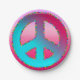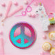 CKC-Peace Symbol-is a digital graphic art design. This design comes from my new Crazy Kids Colours Collection. Strong and bright crazy colours have created layer after layer of crazy fun for children and adults alike. This design in an oversized peace symbol resting on a pink gradient background. The peace symbol is filled with a pink, purple and blue gradient background. Multicolored metal stars trim the edges of the peace sign. There are several assorted peace symbol party plates available in this collection. Feel free to add text to personalise your peace symbol plates.