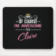 Claire - Of Course I'm Awesome i'm Claire, in mixed white and pink casual sans serif and decorative cursive script font lettering with scroll embellishments and topped a golden crown.