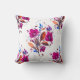 Gorgeous Modern Floral Design to give your space an update anytime! Add sophistication and artistry to your home, office, or patio with this design from an original Watercolor painting. White background features paint splatter in an abstract style. Magenta blooms, blue and gold botanicals, brown leaves. Hints of violet purple and orange. Front design is larger than the back design. Flip it for a different look! Great gift idea!