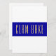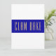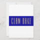 This modern, sleek design features a vibrant wide royal blue horizontal centre stripe. The tall, slender text inside spells out "CLAM BAKE" in warm sleek typography. The outer stripes are crisp, bright white. The text can be personalised.