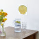 Chic foil print, with a gold foil and aqua clam seashell, on a white background.