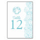 Decorate your wedding tables with these simple double-sided watery beach style portrait wedding table number cards in aqua blue and white. A great idea to help guests find their seats at a beach themed or coastal style wedding or cruise. You must change the number to each number that you need and add them to your cart, one at a time. Quantity discounts may apply once you add all the items to your cart. If you have any questions or need help or other wedding items in this style please contact me. This simple design would also work well to add table numbers to any special function water or sea / beach meal venue or special sit down fine dinning event. Original graphic drawing by Sarah Trett.