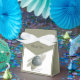 This beach design features a seashell clam and watercolor stroke. Beach themed wedding design with a clam positioned above an elegant watercolor paint stroke. The dusty blue green earthy tones of the clam gives the design a natural aesthetic. This is the perfect beach destination wedding design ideal for a summer or rustic island wedding. Elegant beach wedding favour box design with modern elements. Matching wedding invitations and other stationery items are also available.