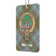 Clan Anderson crest badge surrounded by a strap and buckle over tartan background. Custom text on both sides.